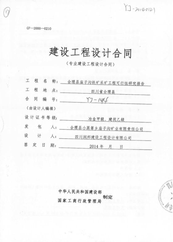 會理縣廟子溝鐵礦采礦工程可行性研究報告