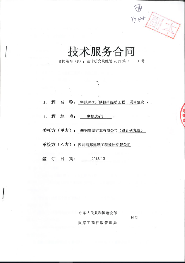 密地選礦廠鐵精礦提質工程--項目建議書