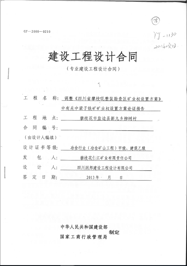 調(diào)整《四川省攀枝花整裝勘察區(qū)礦業(yè)權(quán)設(shè)置方案》中有關(guān)中梁子鐵礦礦業(yè)權(quán)設(shè)置方案論證報告