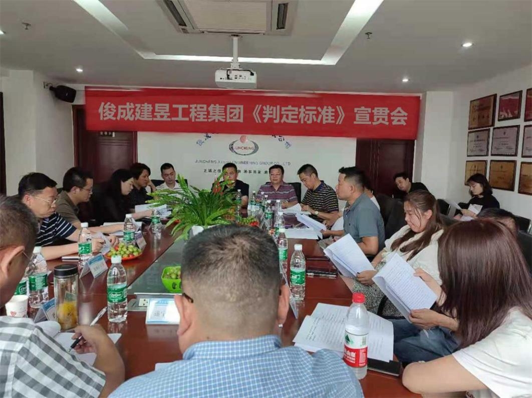 會后,各分公司及項目部陸續開展了《判定標準》的宣貫學習。以監理部牽頭,召集各項目建設單位、施工單位等參建單位對《判定標準》進行了逐條逐句認真學習,然后對標本項目工地進行逐項摸排整改。截止目前,公司各在建項目對《判定標準》的宣貫學習基本完成。